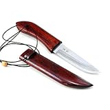 刃渡り100mmで、鞘を入れても140gと軽量なナイフですね。また刃はこれまであげたナイフと同じ白紙多層鋼です。