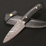 ぜひ、リンク先で大きな写真を見ていただきたいですね。ダマスカス鋼特有の波が見えるのですが、このナイフに関しては一直線に波が出ています。それがまたなんとも言えないきまじめさを見せているように思います。