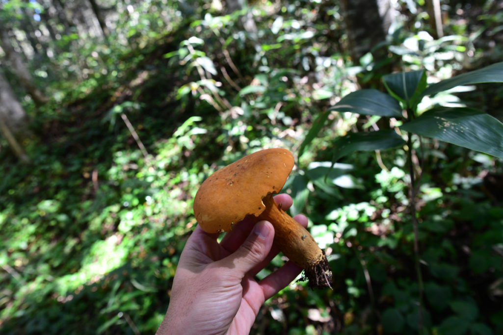 ようやく見つけたのはこのキノコ。イグチ科だと思うけど、それ以上わからず。コガネヤマドリっぽいかな〜、くらいの感覚です。コガネヤマドリは食用不適ということで、さようなら。仮に可食だとしても、あまりにも手応えなく、食べられません。