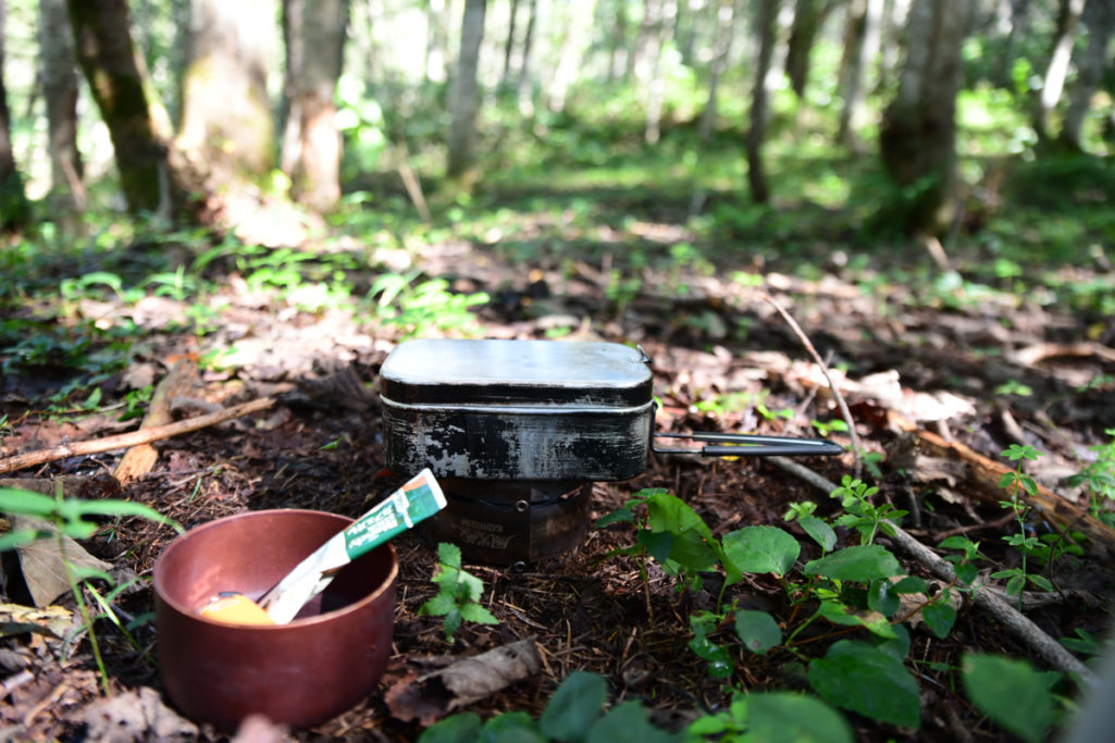 わたしがアルコールストーブを好むのはコレが理由。アルストはほぼ無音で水を温めてくれます。この日も、湯を沸かしインスタントのカフェラテ?を作って飲んでいました。すると——